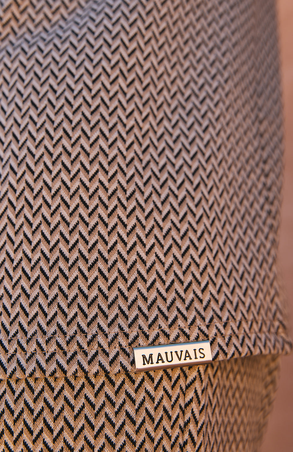 Premium MAUVAIS metal plaque at hem