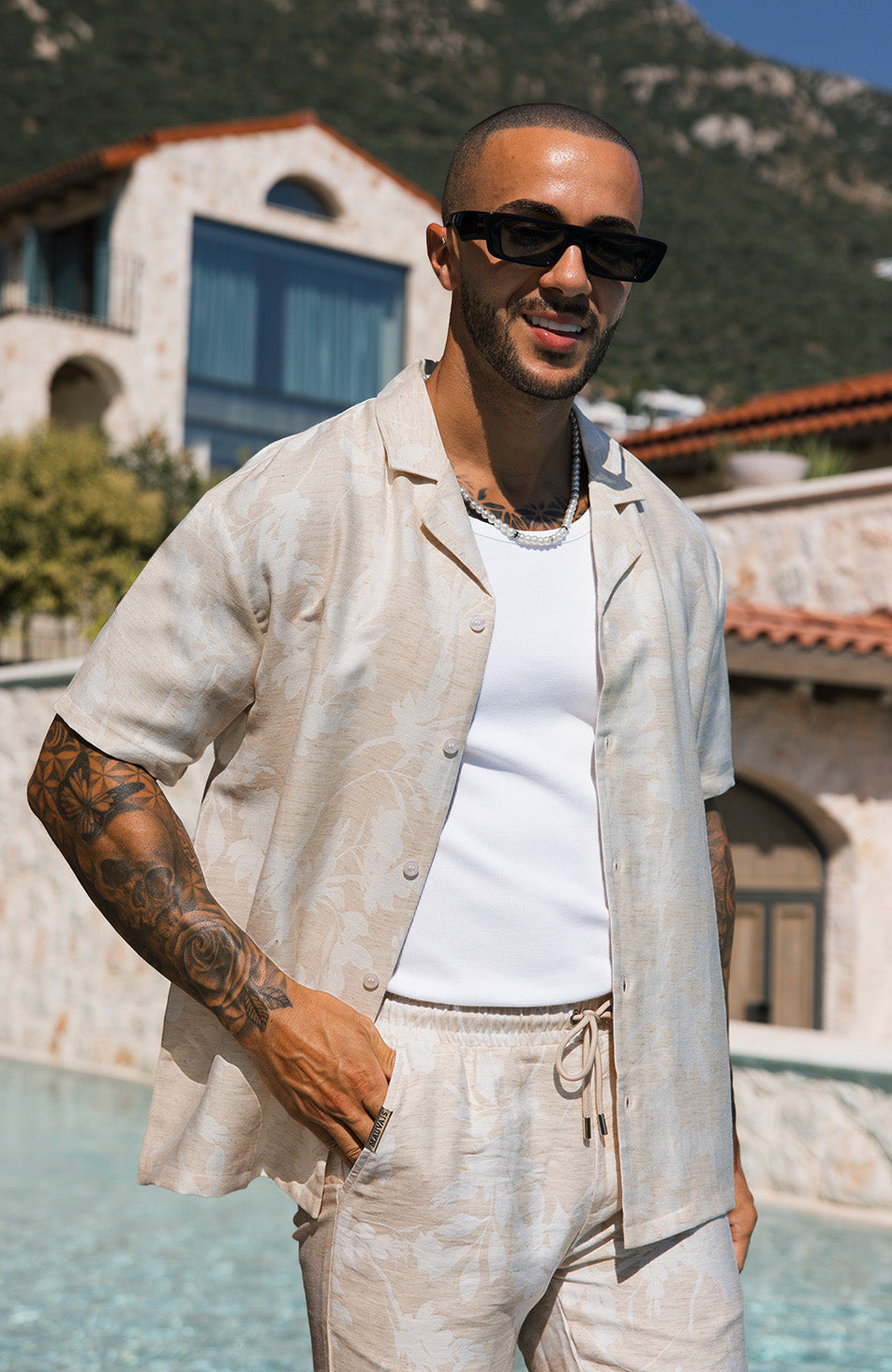 Kandima Linen Blend Floral Relaxed Fit Shorts in Cream