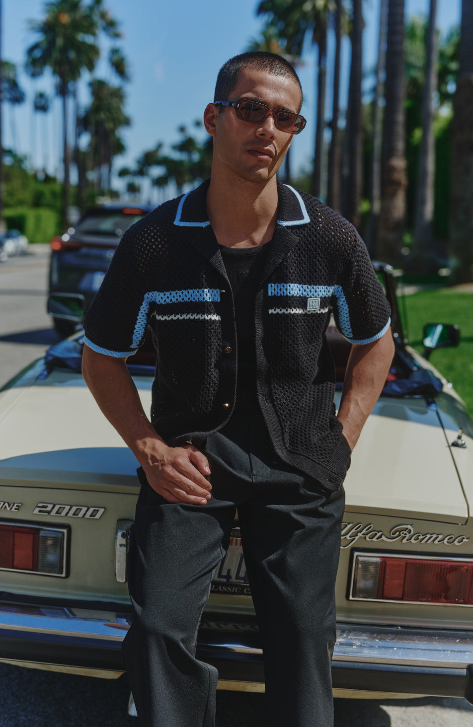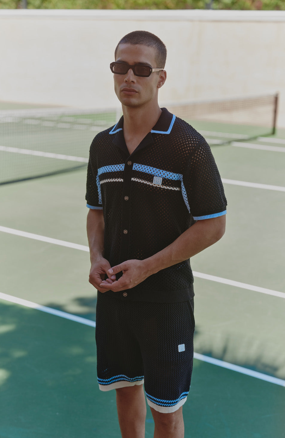 Malibu Cotton Short Sleeve Crochet Shirt in Black