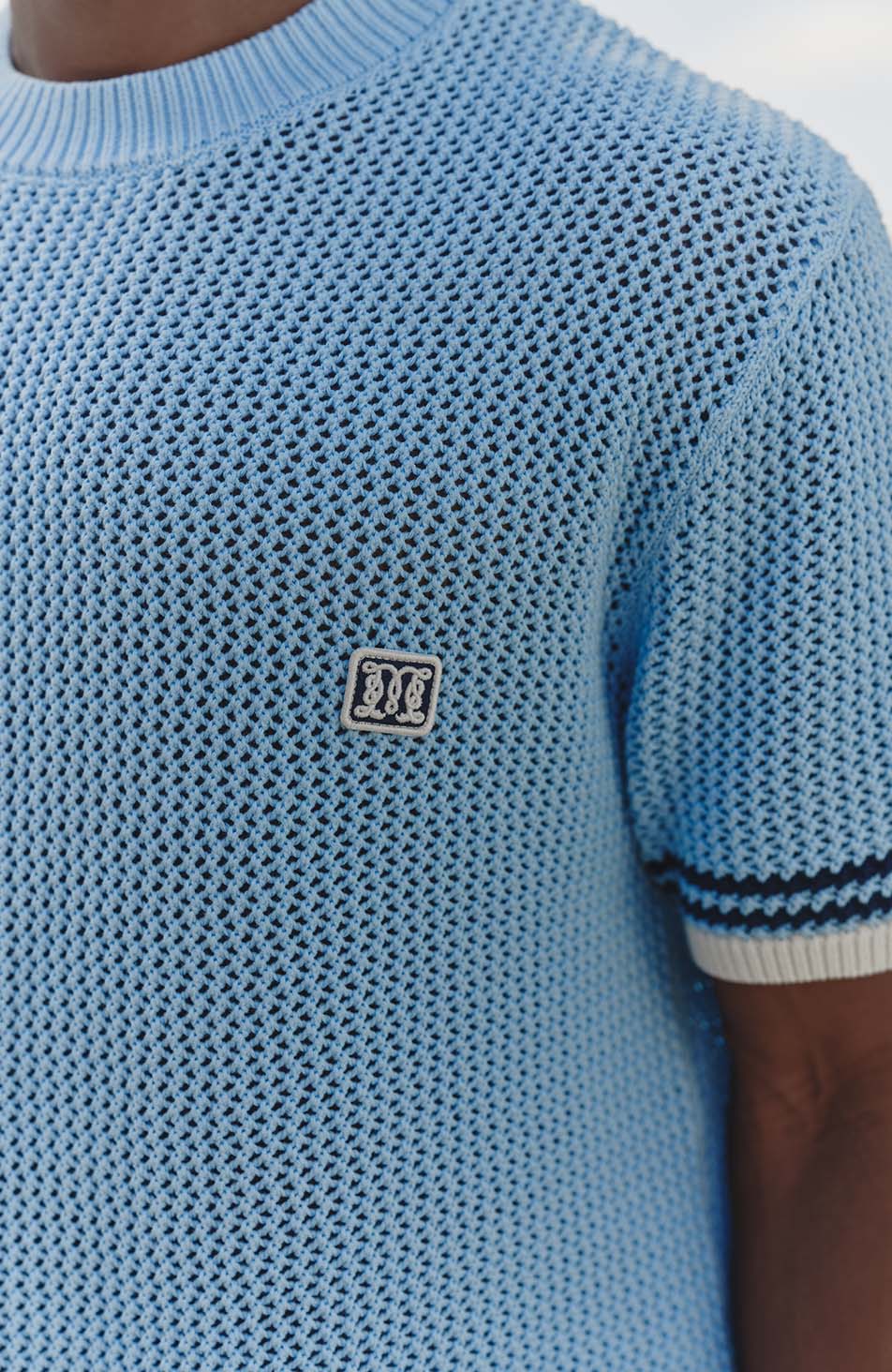 Malibu Cotton Short Sleeve Crochet T-shirt in Blue
